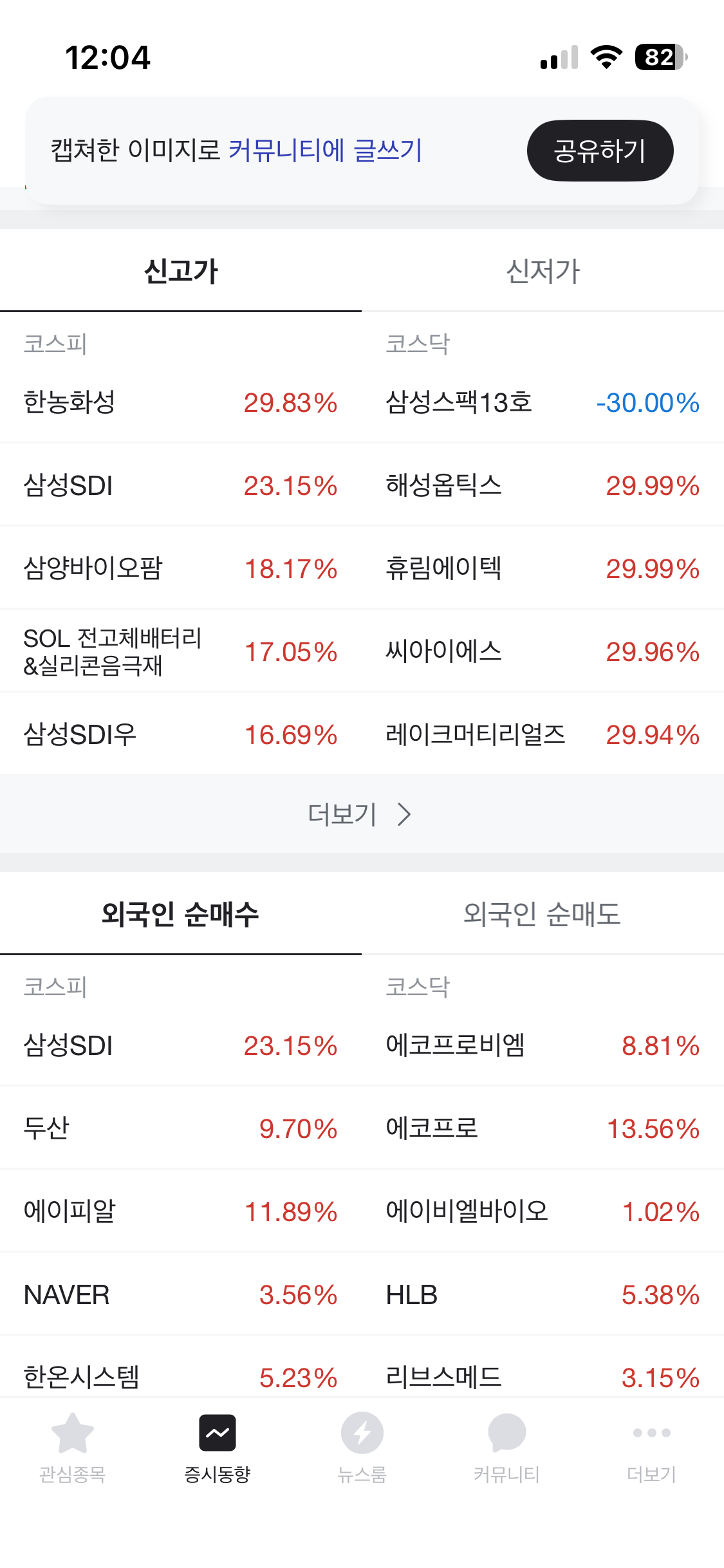 상승률과 하락률 | 신고가 | 외국인 순매수 |