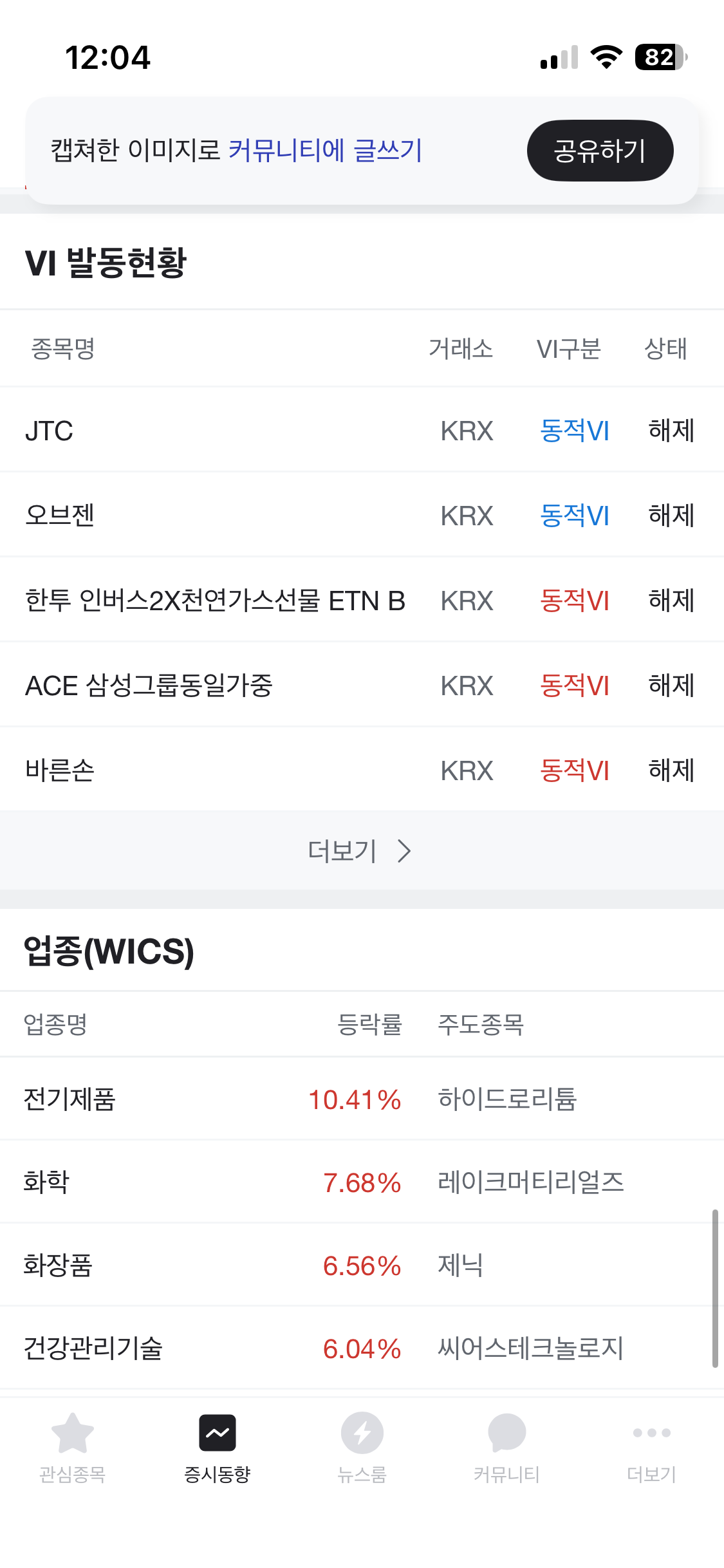 | 시장 지수 | 상승률, 하락률, 거래량, 거래대금 | |||