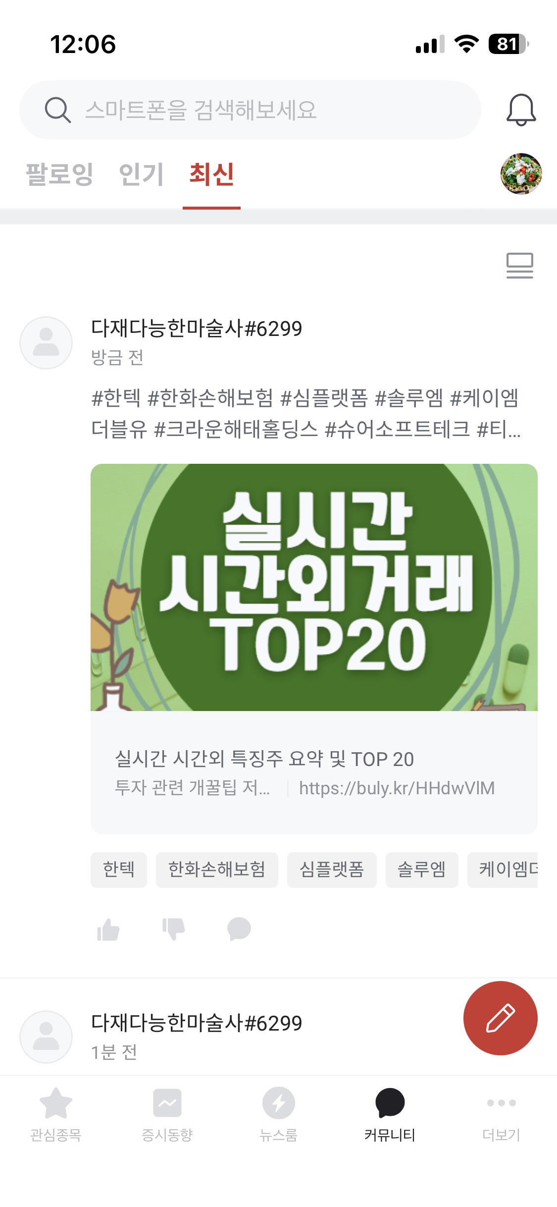 | 팔로잉 | 최신 | |||
