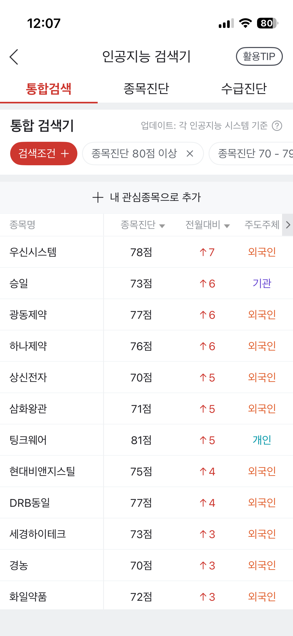 | 통합검색 | 종목진단 | 수급진단 | ||
